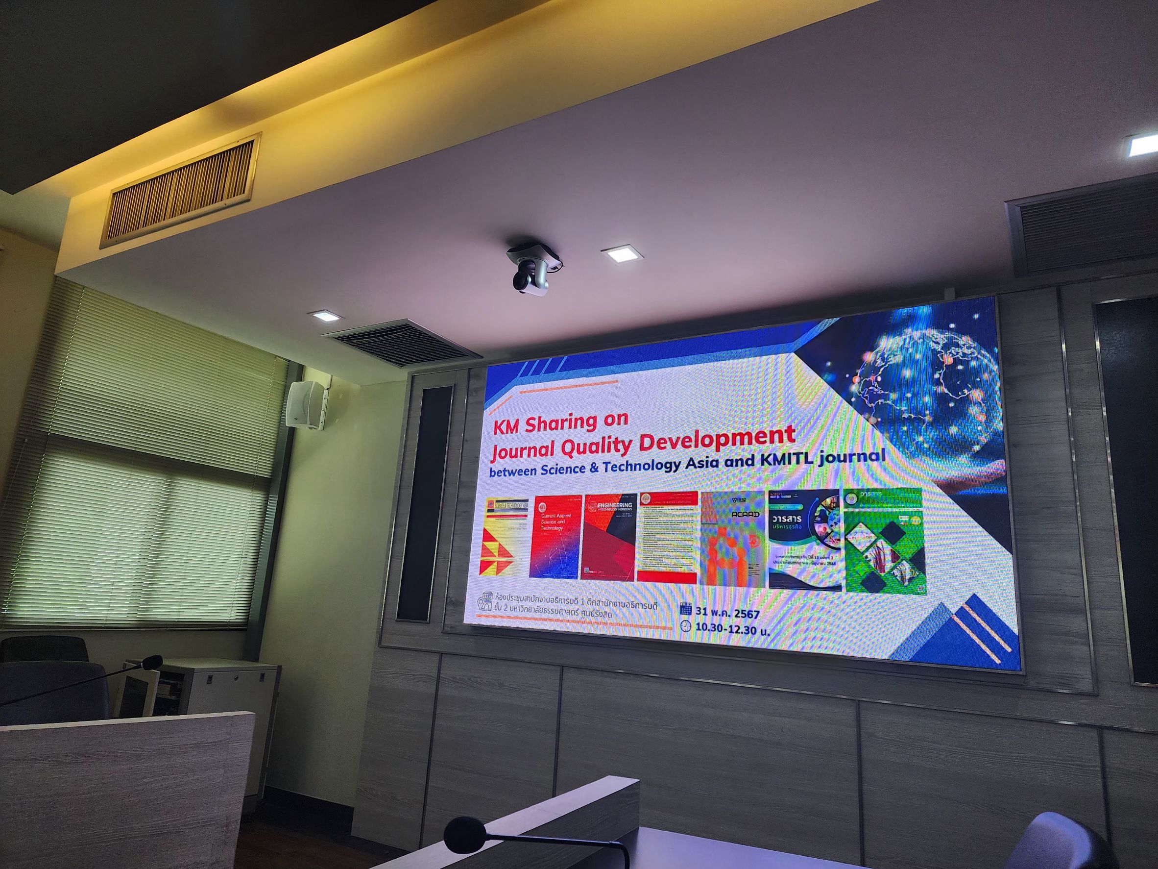 The Office of Academic Journal Administration (OJA), including the editors and the editorial board of KMITL’s scholarly journals, participated in the second project on upgrading KMITL’s scholarly journals and establishing a journal network with the journal “Science & Technology Asia.” The project was organized on Friday, May 31, 2024, in the meeting room of Thammasat University Research Division at The Rector Office, Thammasat University, Rangsit Center.