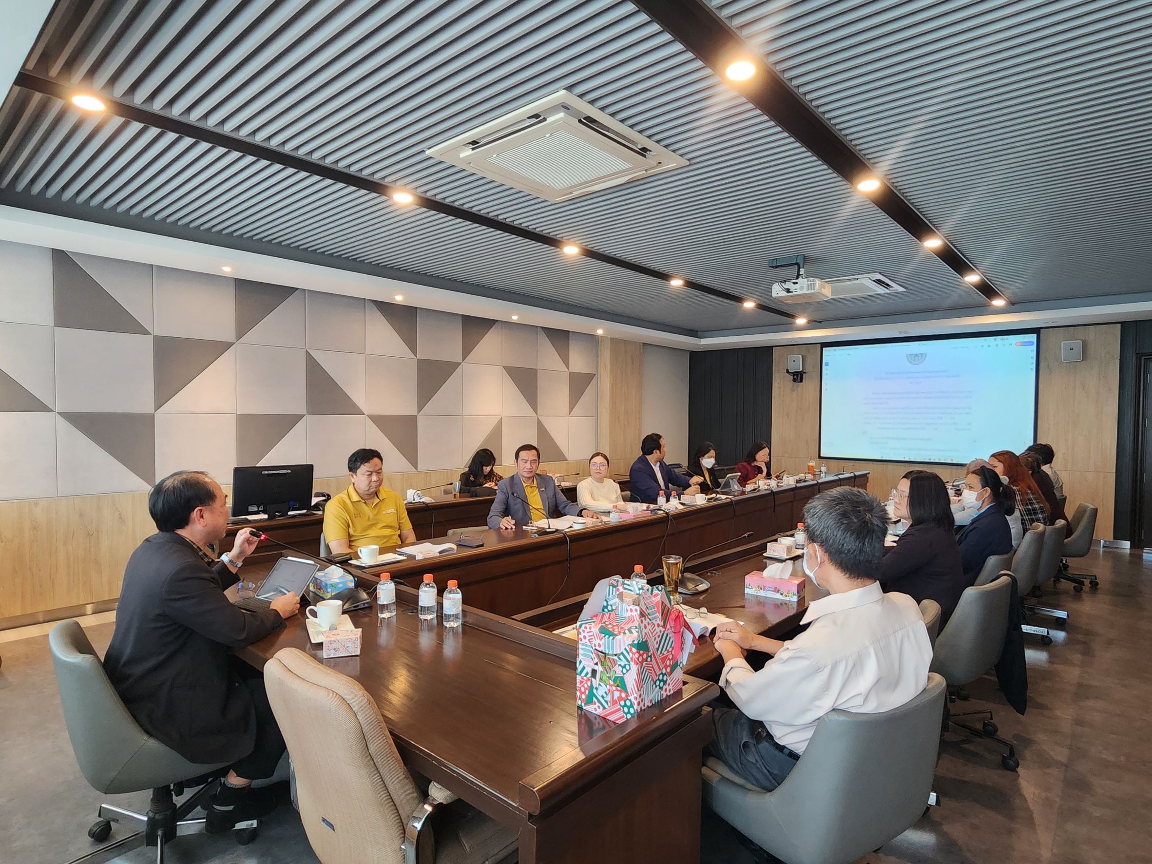 The Office of Academic Journal Administration convened its committee meeting (Session 4/2024) on Monday, December 23, 2024, at the Pikul Meeting Room (703), 7th Floor, Krom Luang Naradhiwas Rajanagarindra Building. The KMITL President assigned Assoc. Prof. Dr. Anuwat Jangwanitlert, Vice President for Academic Affairs, to chair the committee meeting. The editors of internal academic journals attended the meeting.